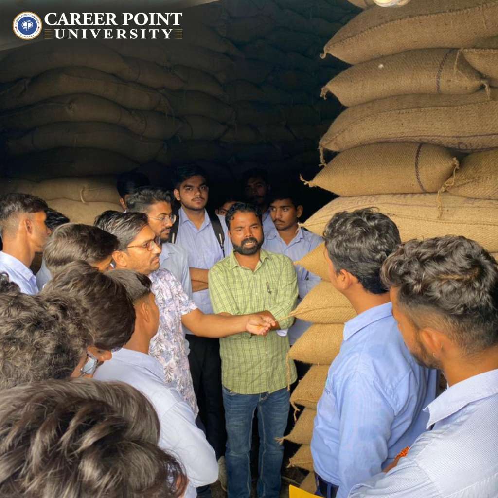 Career Point University’s School of Agricultural Sciences recently organized an insightful educational visit for its students, providing them with the opportunity to explore two critical aspects of the agricultural sector. The students visited the Food Corporation of India (FCI) warehouse in Kota and the Devnarayan Animal Husbandry Scheme in Dharmpura, Kota, where they gained valuable hands-on experience in modern food storage techniques and advanced animal husbandry practices.