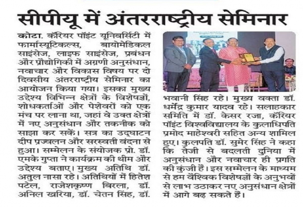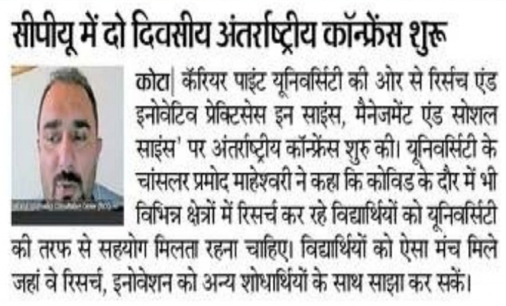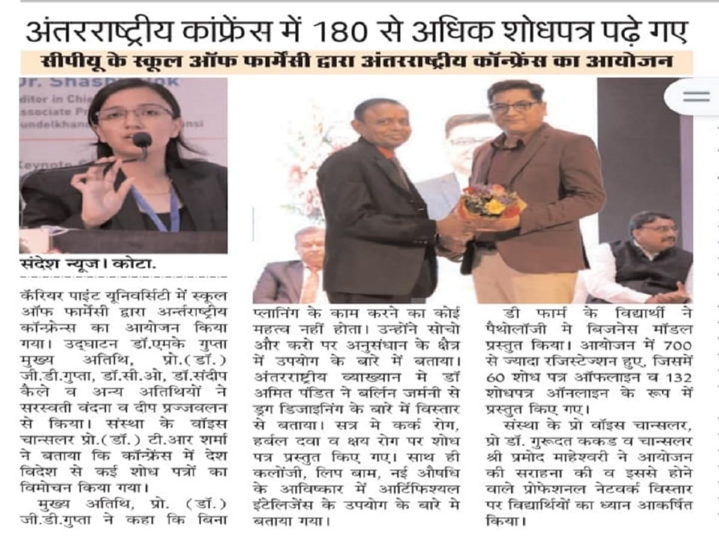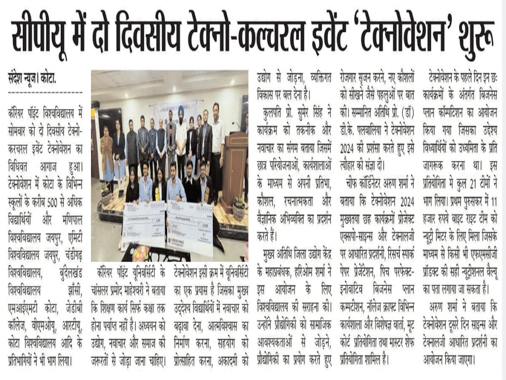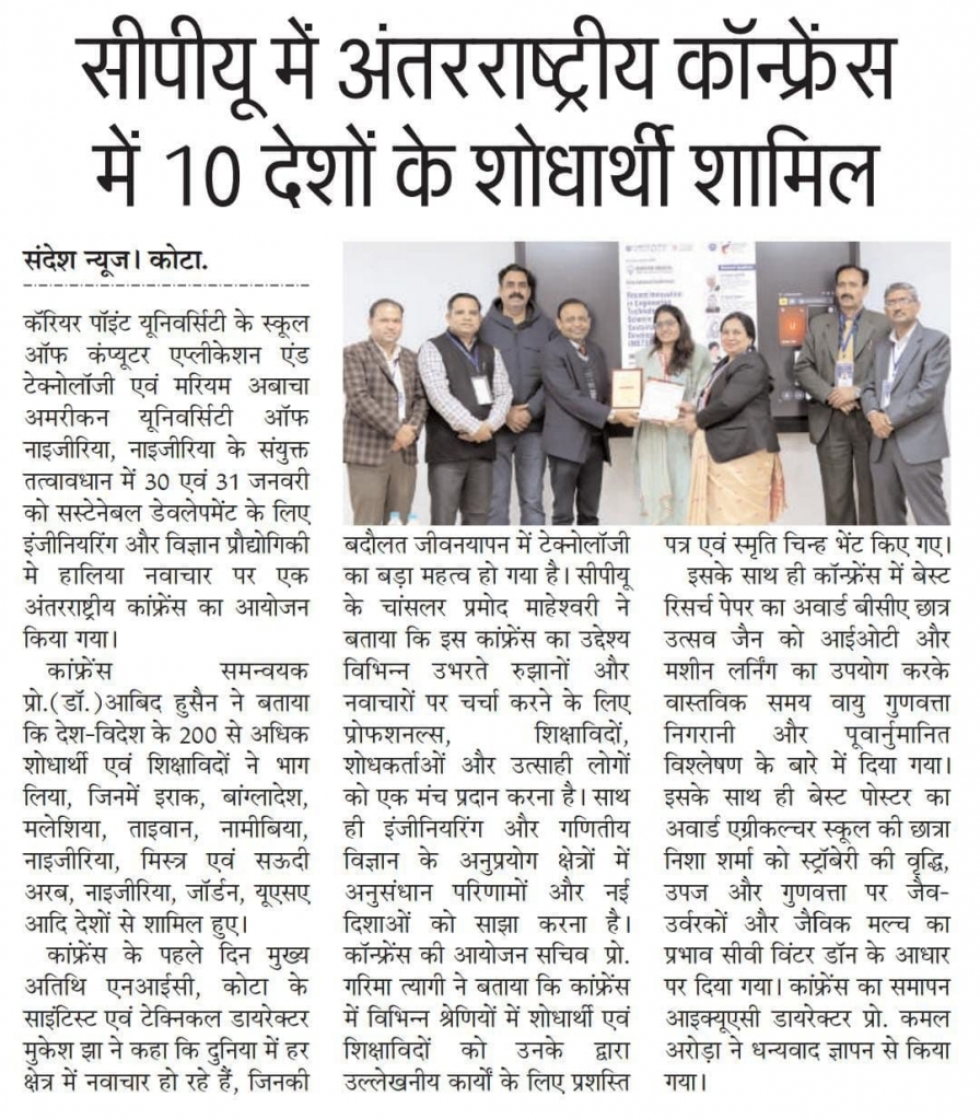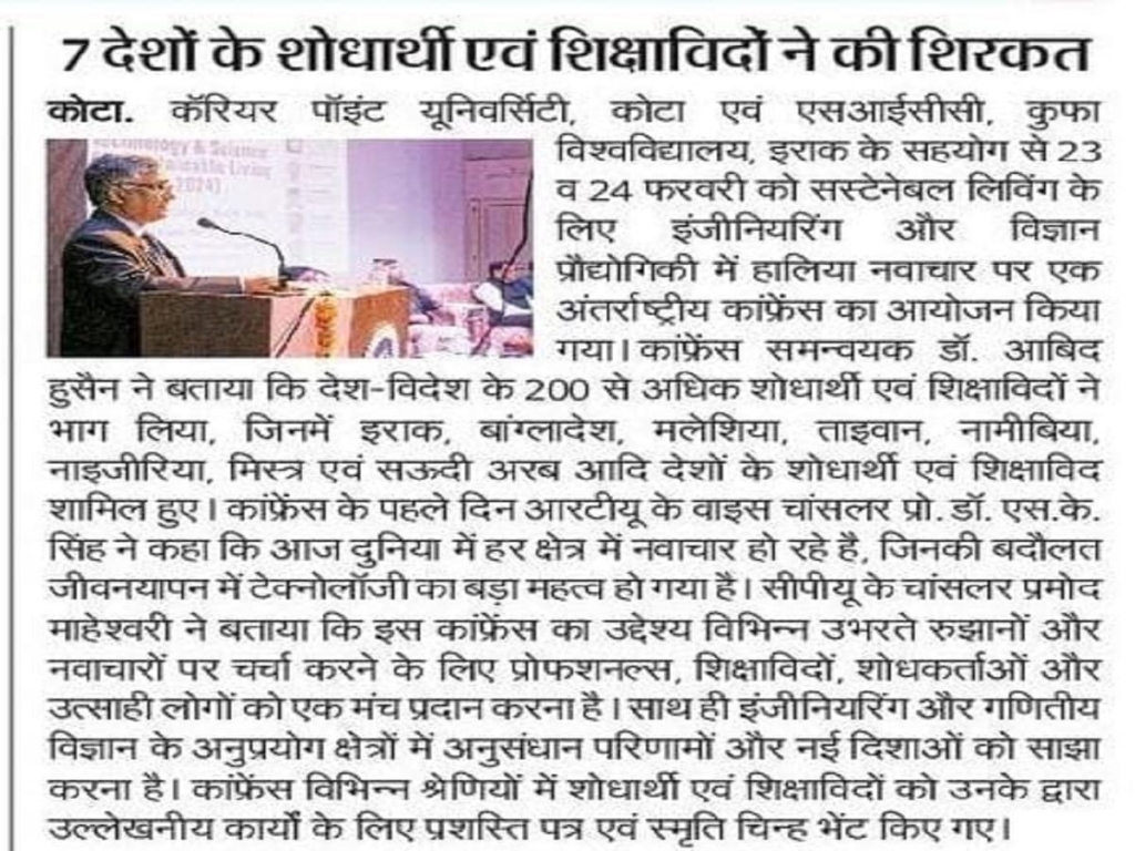 Career Point University, Kota organized a two-day international conference on sustainable technological innovations, attracting over 200 researchers and academicians from India and more than 10 countries. The event highlighted emerging research, global collaboration, and student achievements, reinforcing CPU’s role as a hub for academic excellence and innovation.
