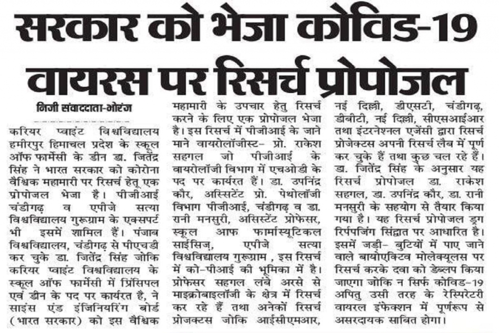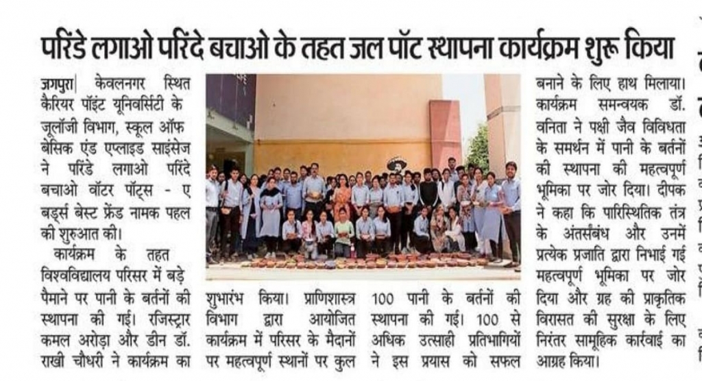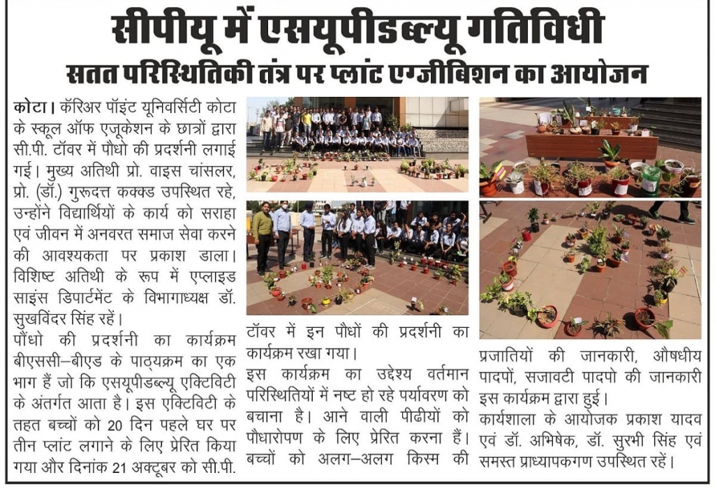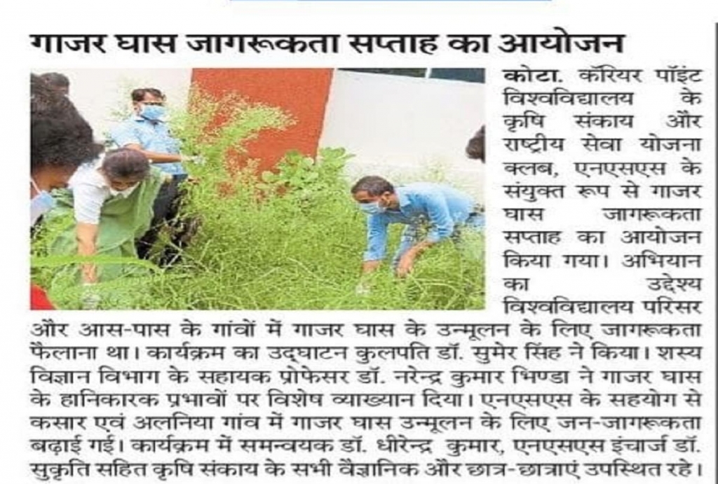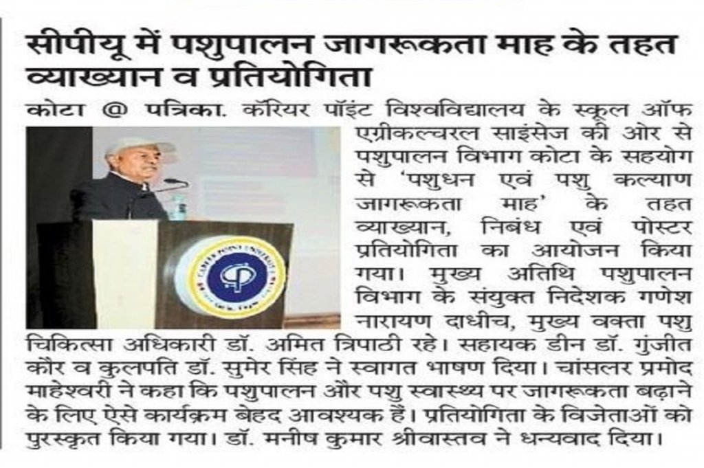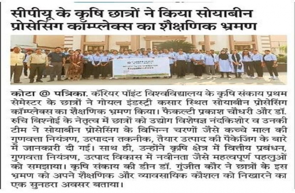 The School of Agricultural Sciences, Career Point University, Kota, in collaboration with ATMA, organized a two-day farmer training program on natural farming. Experts shared insights on soil health, water conservation, pest management, and crop production techniques. The initiative aimed to promote self-reliant farming practices under Atmanirbhar Bharat Abhiyan.