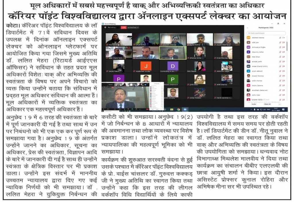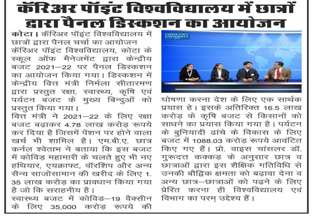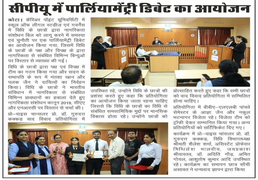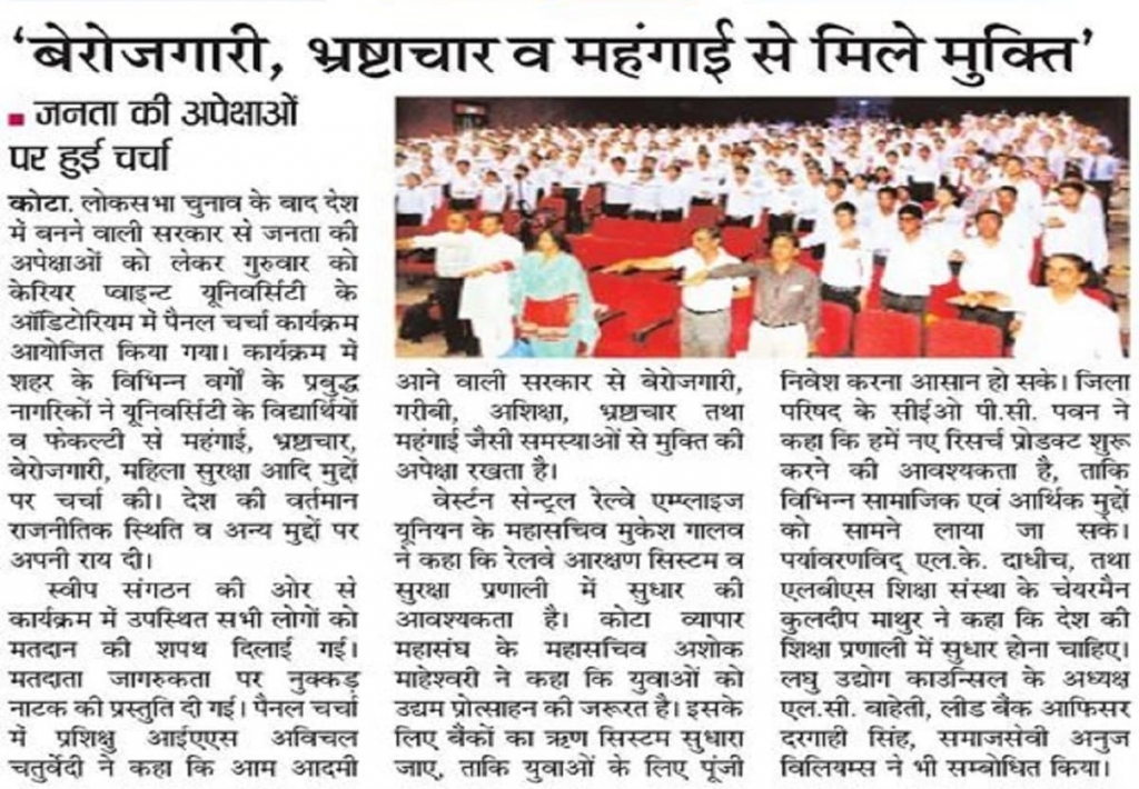 Career Point University hosted a panel discussion on public expectations from the new government, addressing issues like unemployment, corruption, and women's safety. A voter awareness street play was staged, followed by an oath-taking ceremony to promote voting.