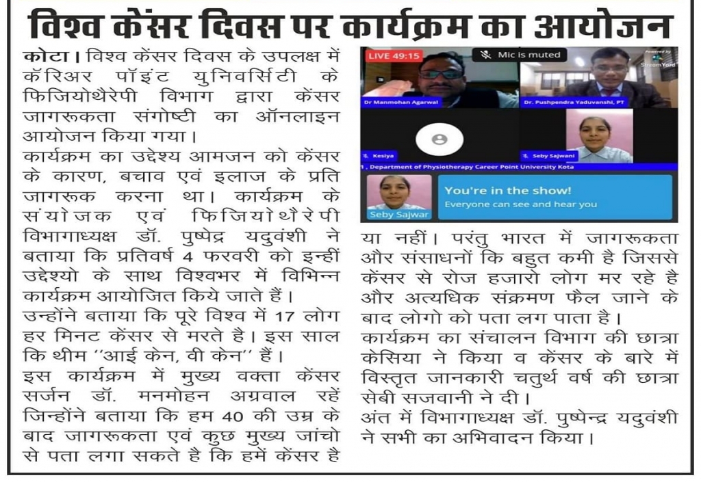 School of Health & Allied Sciences, Department of Physiotherapy, CPU Kota