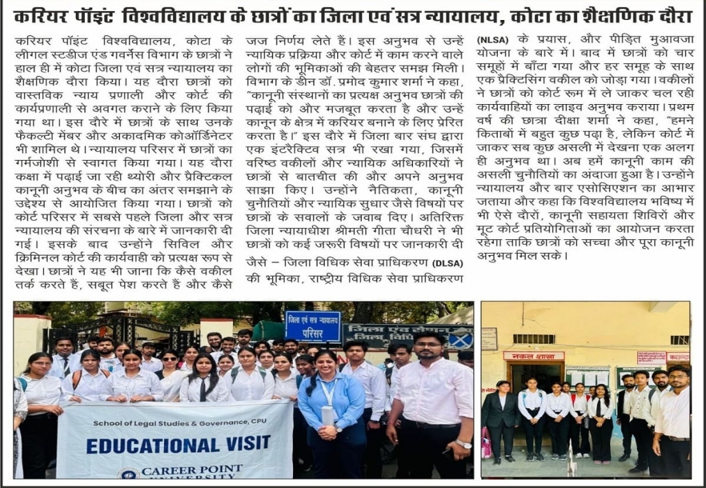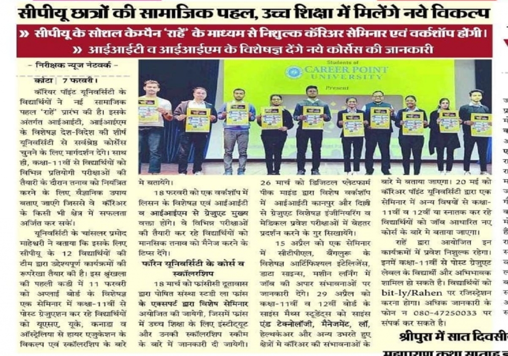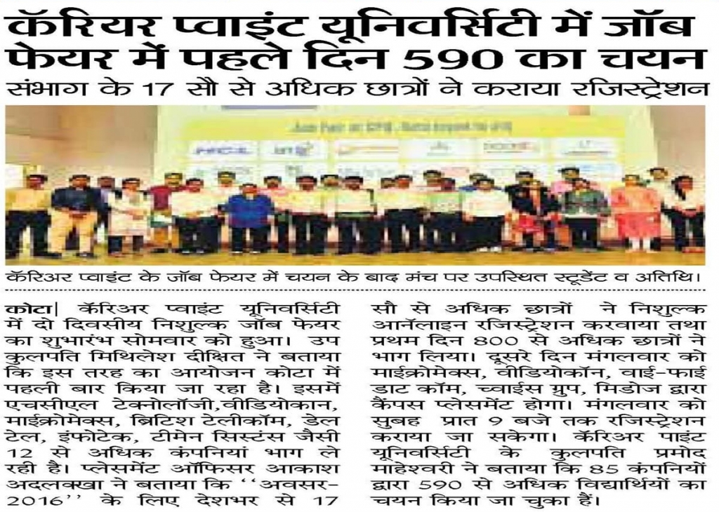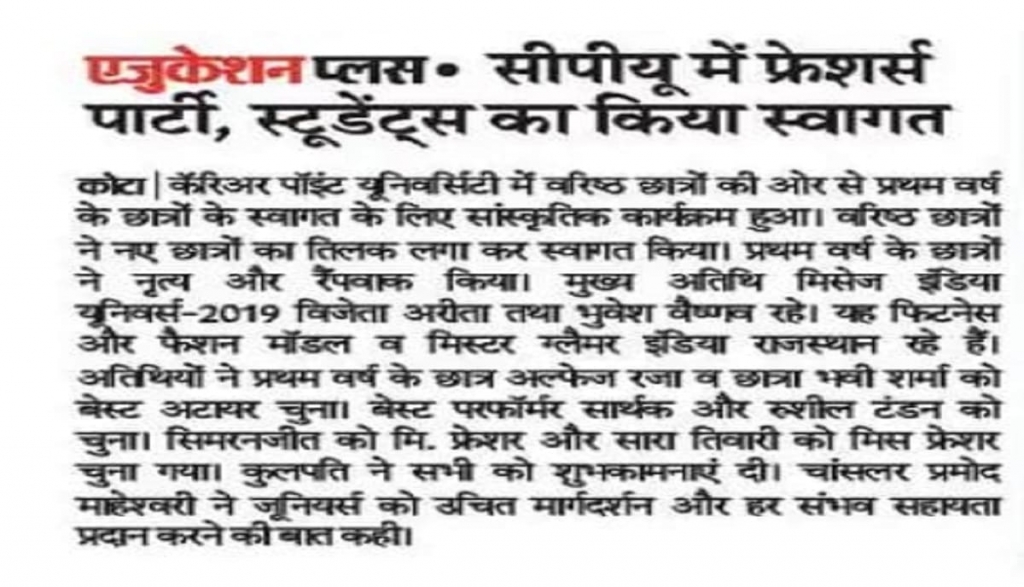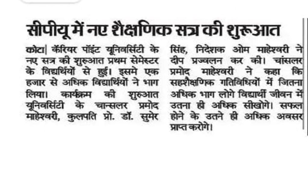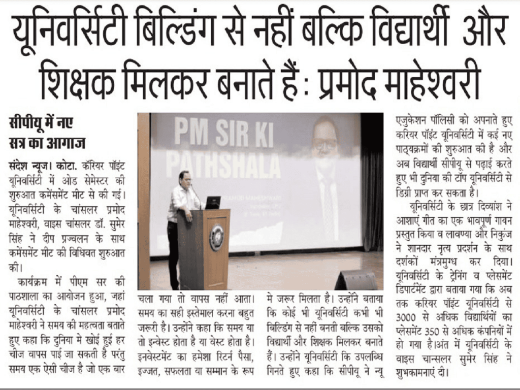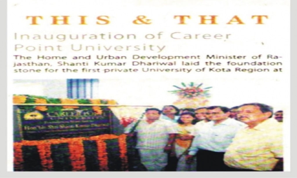 This event marked a significant milestone in the education sector of the Kota region. Career Point University became the first private university established in the area.
