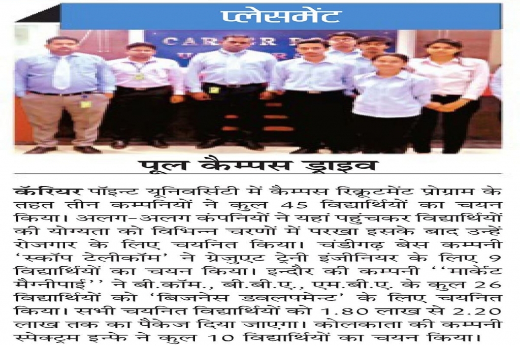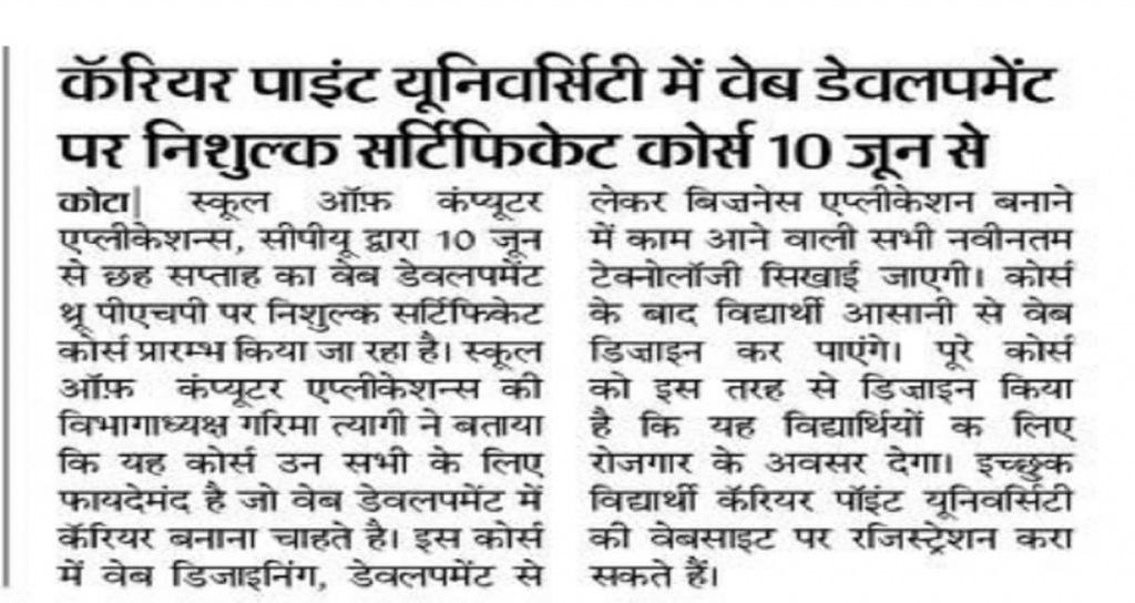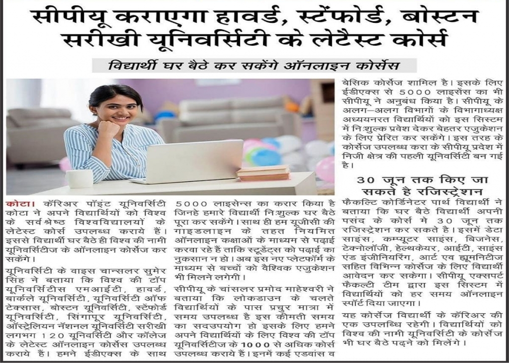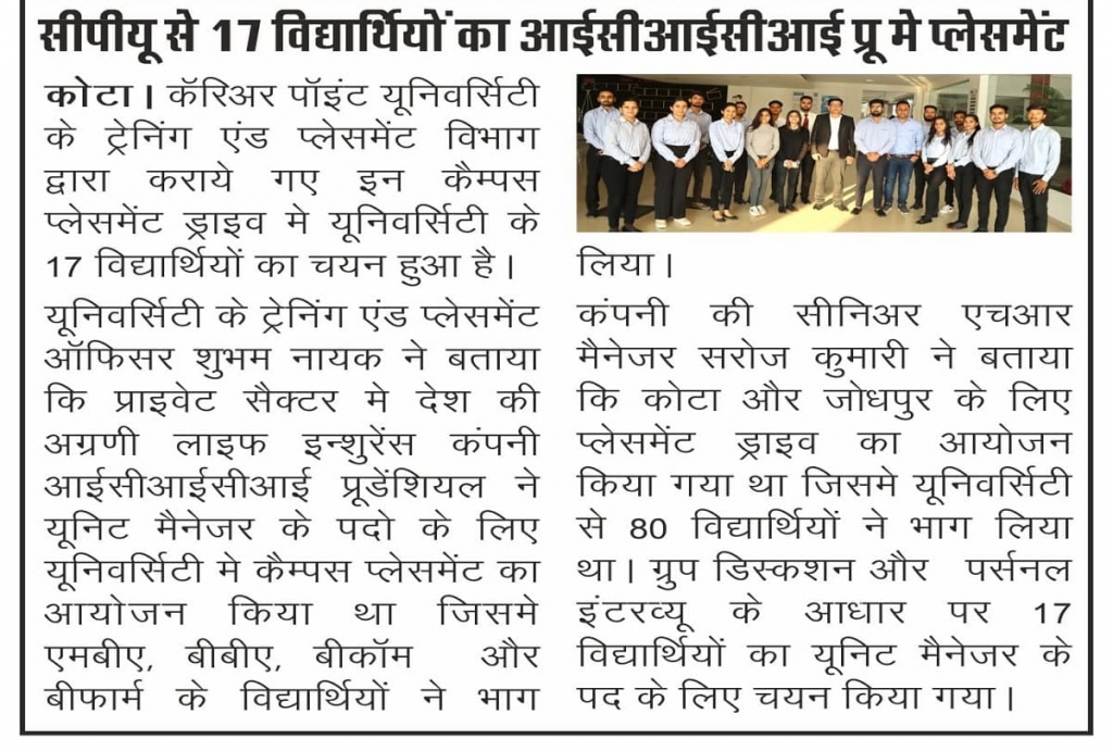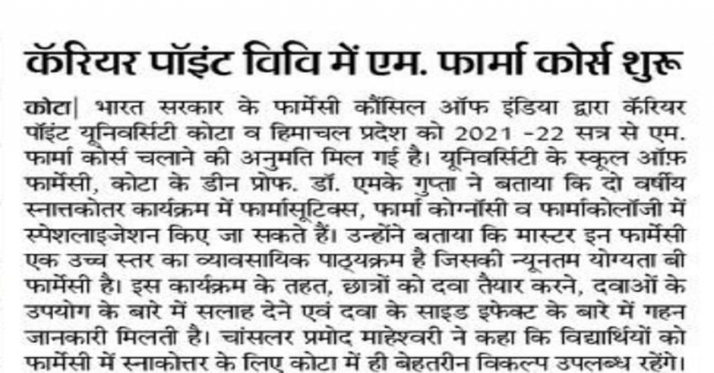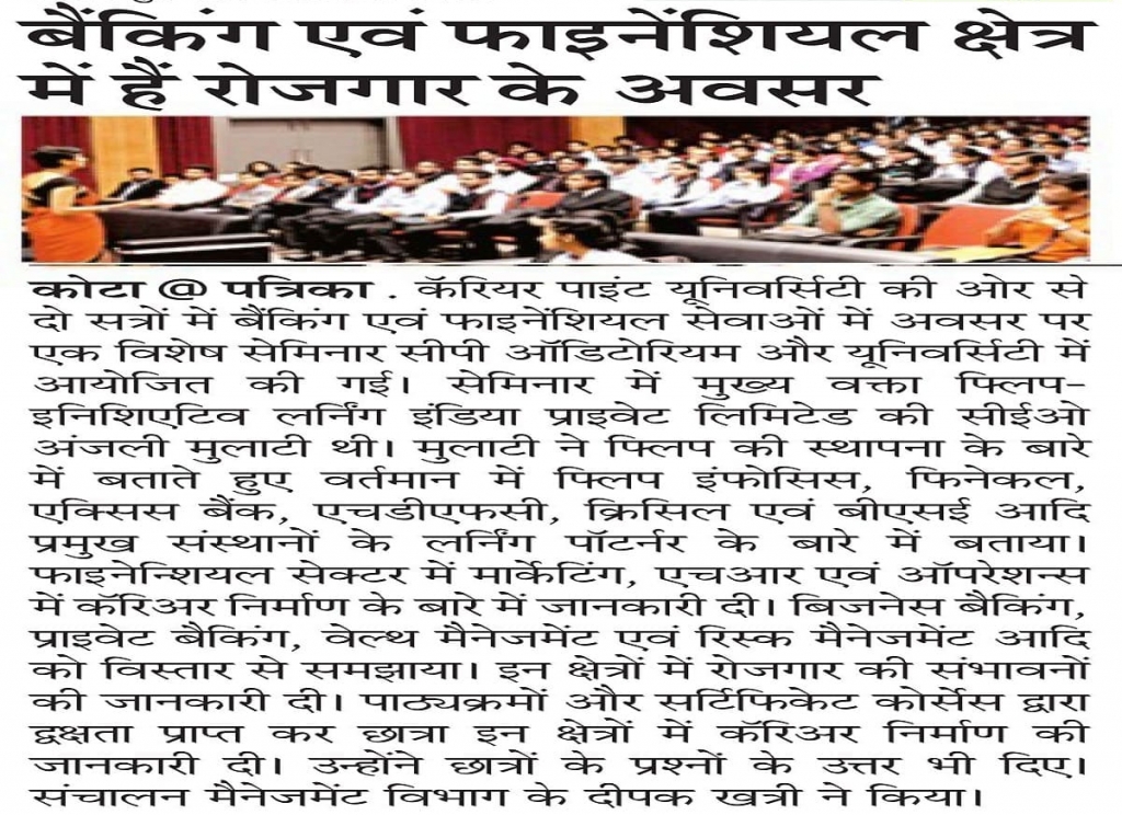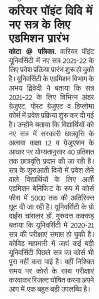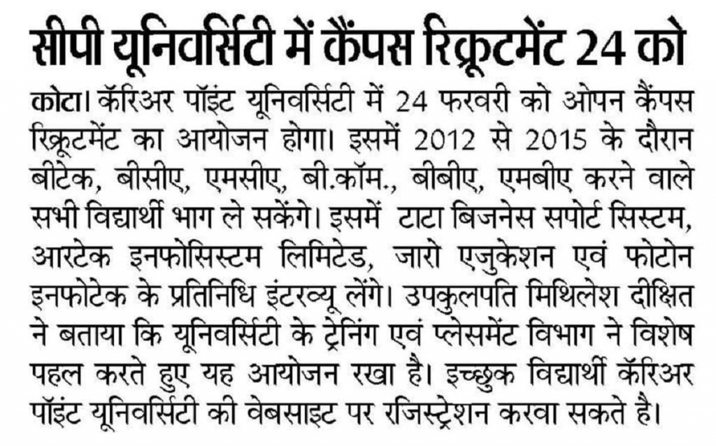 Career Point has become Kota’s first private university under the Private University Act, offering admissions from 2012–13. With a 50-acre campus and global academic focus, it emphasizes quality education and practical learning.