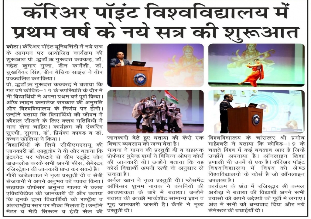 Career Point University welcomed students to the new semester with a traditional Commencement Meet. Leaders emphasized NEP-driven education, practical learning, global readiness, and participation in campus events. The event blended motivation, insights, and student cultural performances.