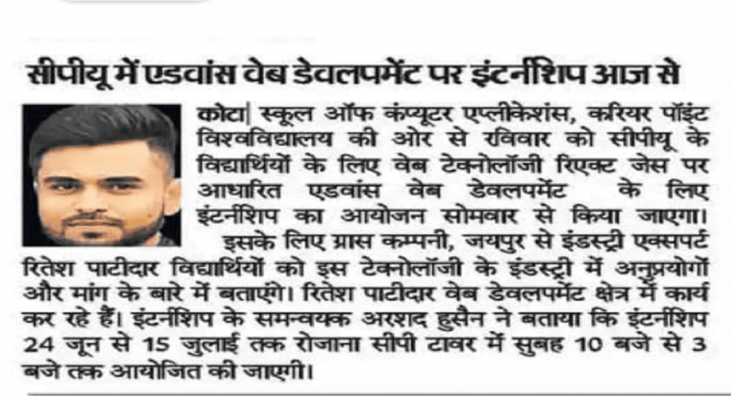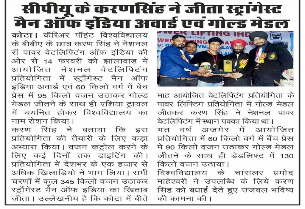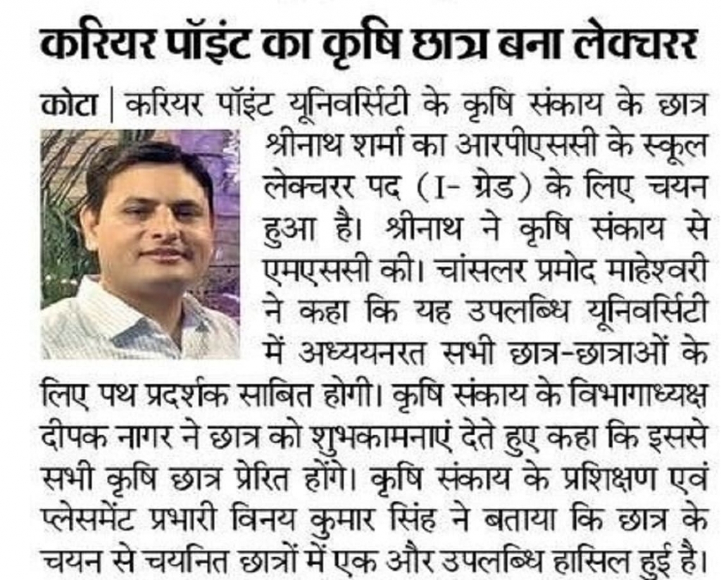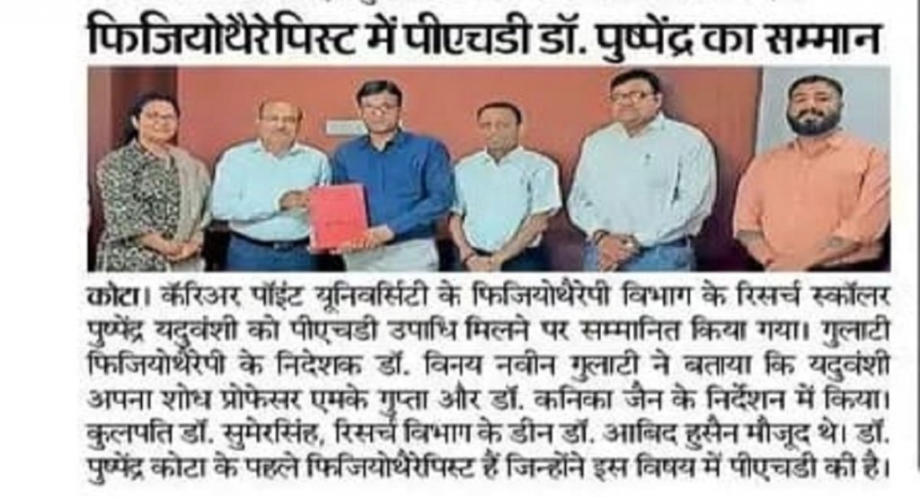Badal Verma, a bright student from the Physiotherapy Department of Career Point University, Kota, has been selected as a Junior Physiotherapist at AIIMS, New Delhi. His remarkable achievement brings pride to the university and the entire state of Rajasthan.
