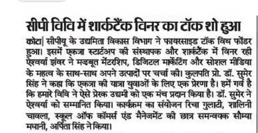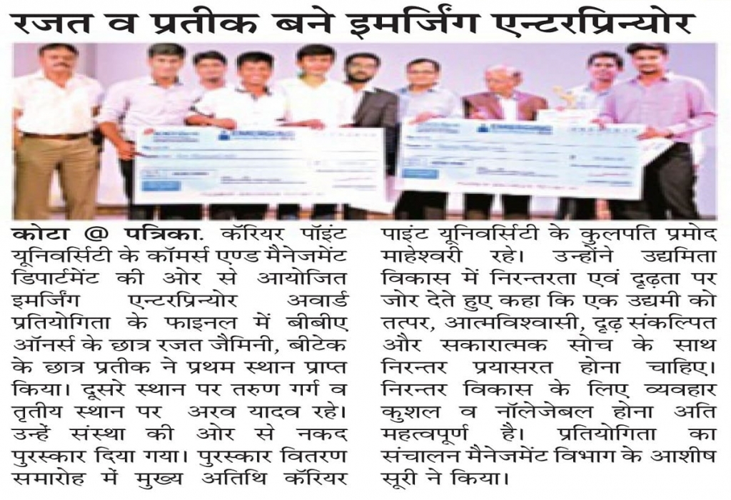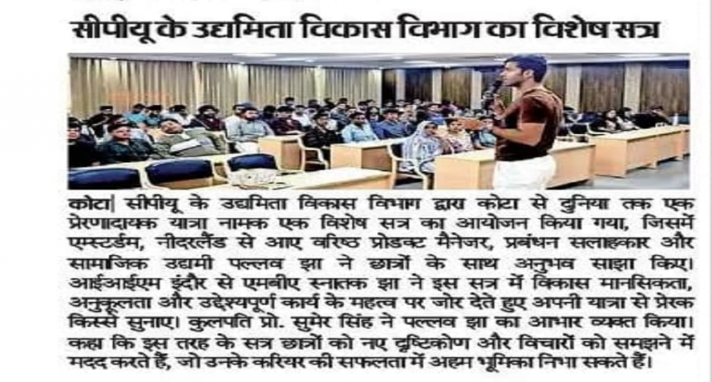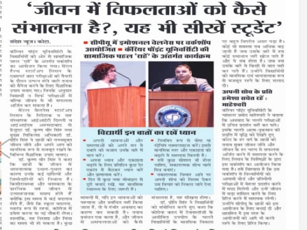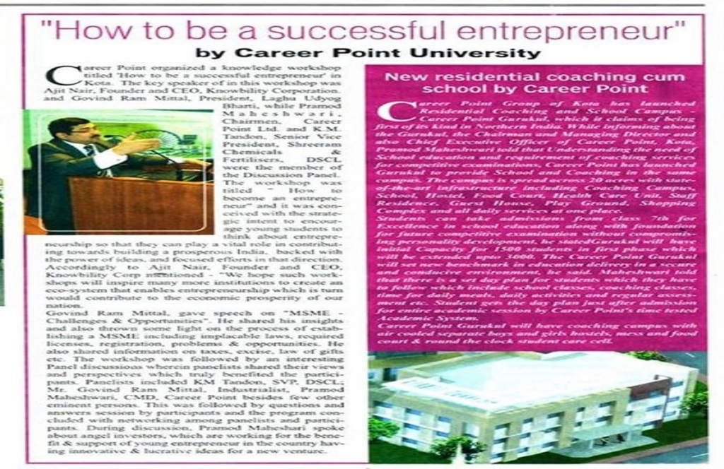 Career Point University hosted a workshop on "How to Be a Successful Entrepreneur," featuring industry experts sharing insights on startups, MSMEs, and funding. The event also marked the launch of Career Point Gurukul, a 20-acre residential campus blending academics with competitive exam coaching.
