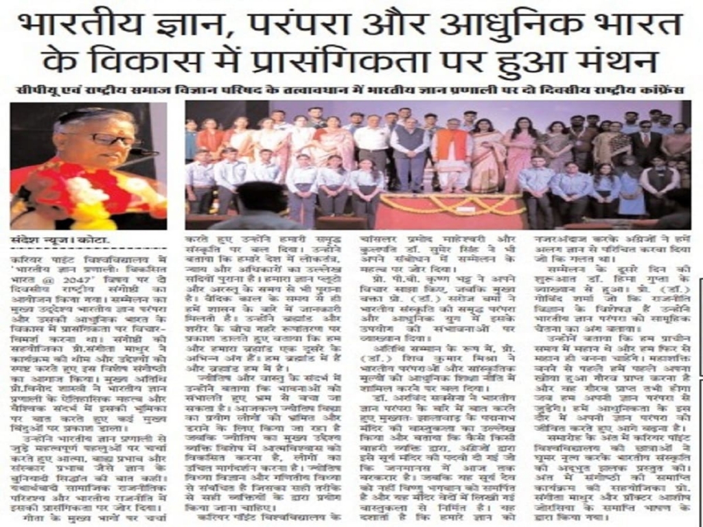 Career Point University, Kota organized a special academic program on the Indian Knowledge Tradition, highlighting its global scientific and philosophical relevance in modern education.