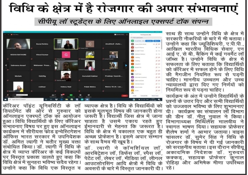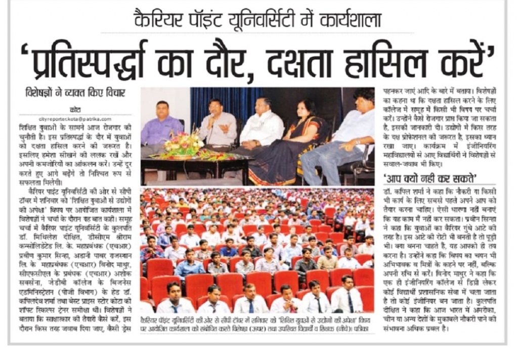 Career Point University held a workshop on "Expectations of Industries from Educated Youth," highlighting skill development, interview readiness, and career alignment. Experts urged students to focus on self-assessment, soft skills, and interest-driven careers.
